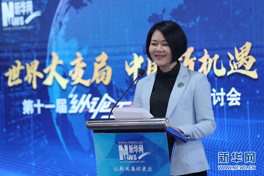 1月8日,新華網(wǎng)第十一屆“縱論天下”國際問題研討會在北京成功舉行。圖為新華網(wǎng)黨委書記、副董事長徐姍娜發(fā)表致辭。新華網(wǎng) 郭小天 攝