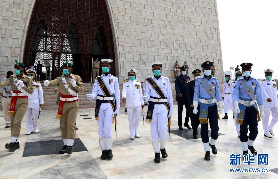 3月23日,巴基斯坦軍人在位于卡拉奇的國父真納墓參加“巴基斯坦日”紀(jì)念活動。