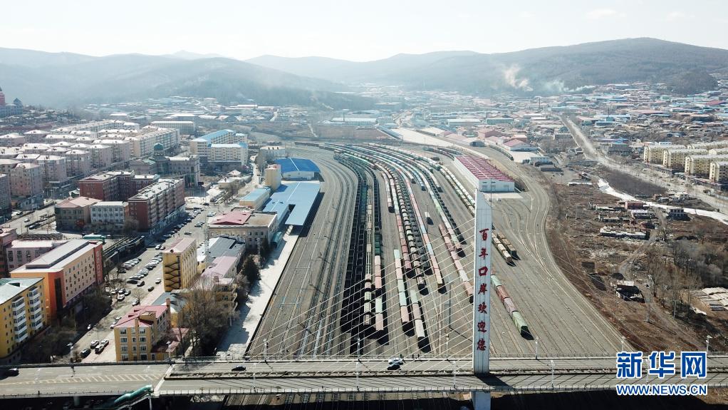 這是3月31日拍攝的綏芬河站南場(chǎng),中歐班列從這里出入境(無(wú)人機(jī)照片)。新華社記者 王建威 攝