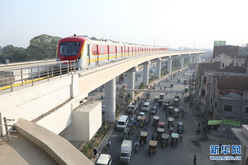 在巴基斯坦拉合爾市,一輛橙線地鐵列車準備進站(2020年10月26日攝)。當日,巴基斯坦首條地鐵——拉合爾橙線迎來首批乘客,標志著巴基斯坦步入“地鐵時代”。新華社記者劉天攝