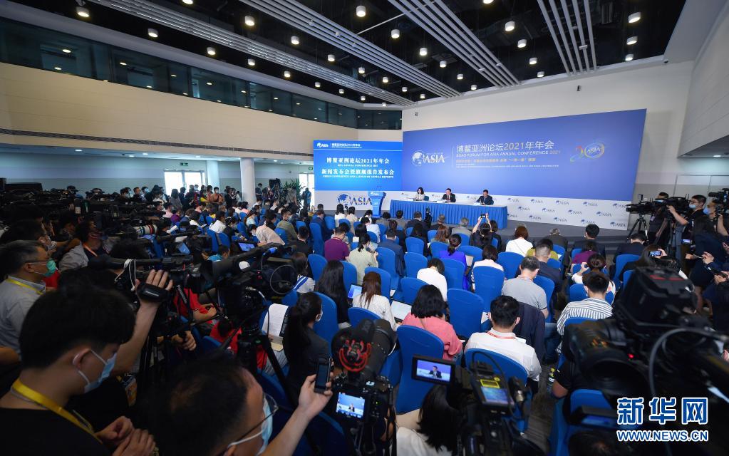 這是博鰲亞洲論壇2021年年會新聞發(fā)布會現(xiàn)場(4月18日攝)。新華社記者 郭程 攝