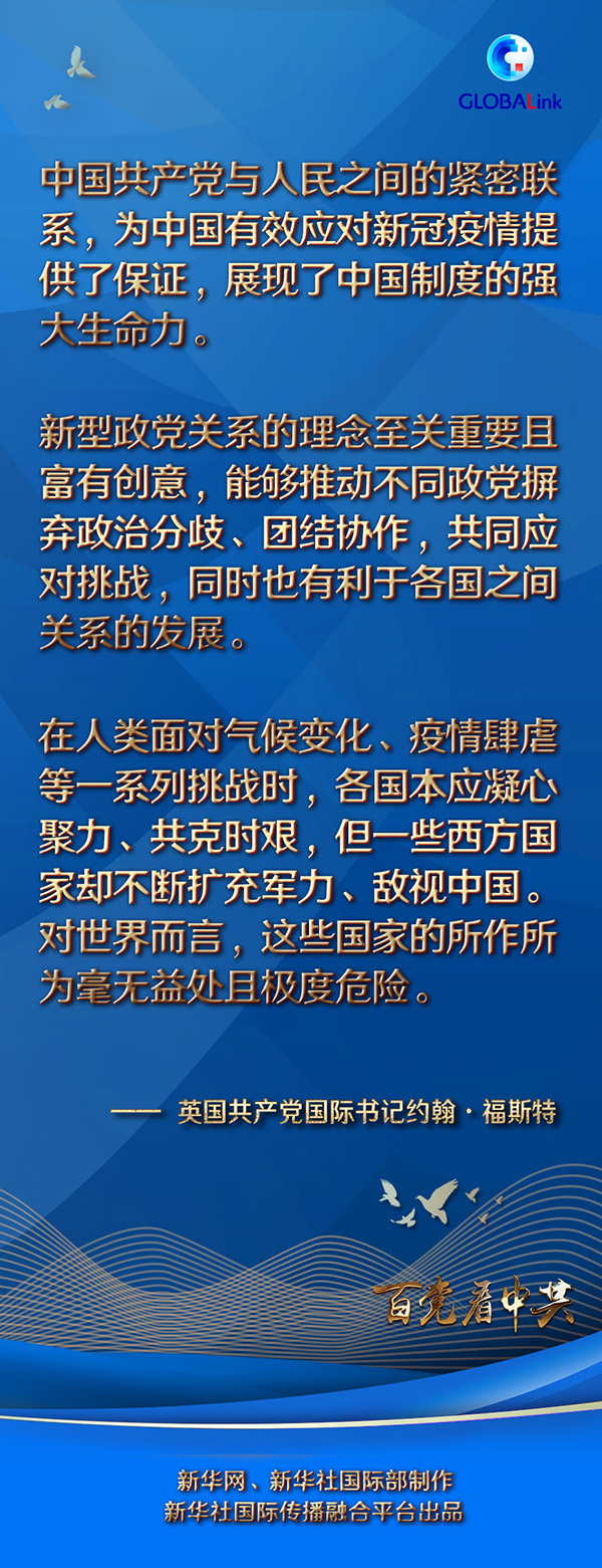 福斯特表示,作為一個(gè)領(lǐng)導(dǎo)著世界上人口最多國(guó)家的百年大黨,中共倡導(dǎo)建立新型政黨關(guān)系和構(gòu)建人類(lèi)命運(yùn)共同體,對(duì)促進(jìn)世界的和平與發(fā)展具有重要意義。