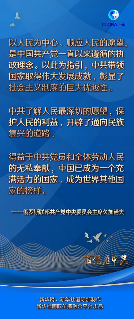 久加諾夫?qū)χ袊伯a(chǎn)黨百年華誕表示祝賀。回顧百年歷程,他表示,中共了解人民最深切的愿望,保護(hù)人民的利益,開辟了通向民族復(fù)興的道路。