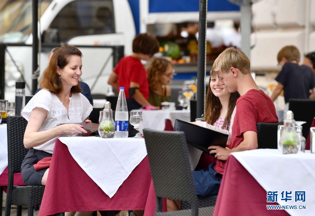 6月24日,人們?cè)谝獯罄_馬一家餐館的戶外區(qū)域消費(fèi)。