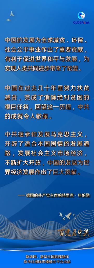 科伯勒認(rèn)為,中共繼承和發(fā)展馬克思主義,開辟了適合本國國情的發(fā)展道路,發(fā)展社會主義市場經(jīng)濟,不斷擴大開放,中國的發(fā)展為世界經(jīng)濟發(fā)展作出了巨大貢獻。