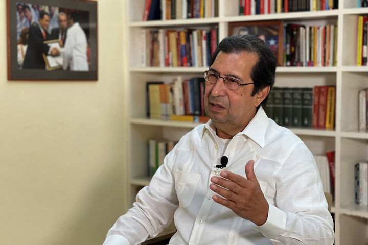 4月1日,委內(nèi)瑞拉統(tǒng)一社會(huì)主義黨副主席、委內(nèi)瑞拉駐古巴大使阿丹·查韋斯在古巴首都哈瓦那接受采訪。新華社發(fā)(委內(nèi)瑞拉駐古巴使館供圖)