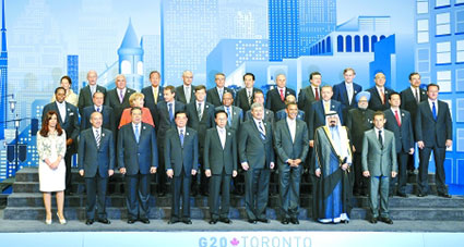 2010年6月,二十國(guó)集團(tuán)第四次峰會(huì)在加拿大多倫多舉行。多倫多峰會(huì)確定了增長(zhǎng)的主調(diào),信守并履行了“強(qiáng)勁、可持續(xù)和平衡增長(zhǎng)框架”和金融監(jiān)管改革等主要日程,在發(fā)達(dá)國(guó)家削減財(cái)政赤字、國(guó)際金融機(jī)構(gòu)治理改革、反對(duì)貿(mào)易保護(hù)主義等問(wèn)題上提出了一些具體的時(shí)間表,并強(qiáng)調(diào)了二十國(guó)集團(tuán)的首要任務(wù)是確保和加強(qiáng)經(jīng)濟(jì)復(fù)蘇。