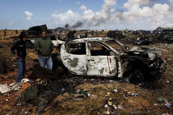 法國戰(zhàn)機摧毀數(shù)輛卡扎菲軍隊裝甲車